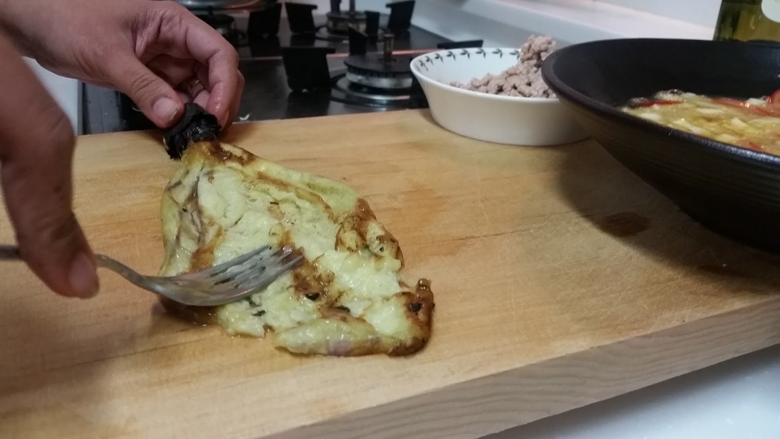 6. Flip the eggplant when the bottom part is already cook and wait until the other side is turns golden brown.
